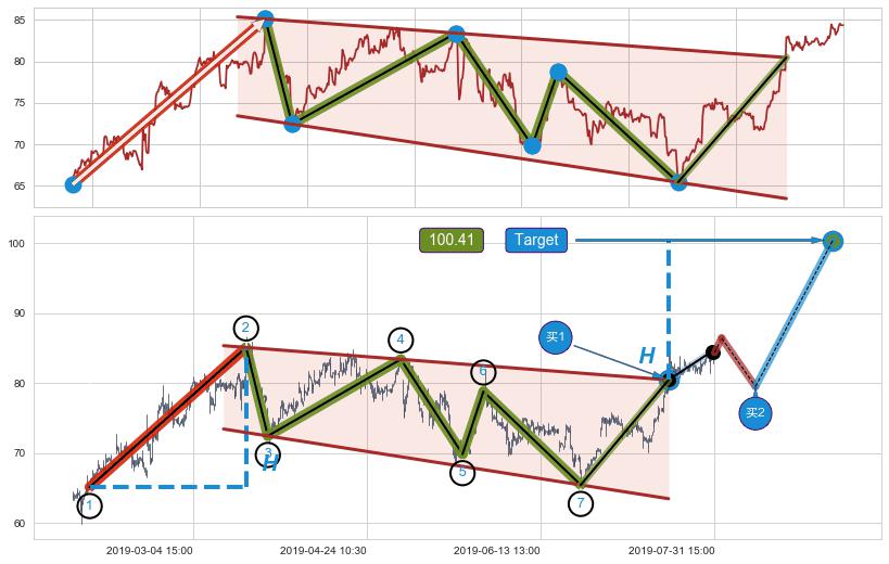 ➣ 【看多】信号叠加后首先朝【反向回撤】方向,之后再次起到影响朝【目标达成】方向