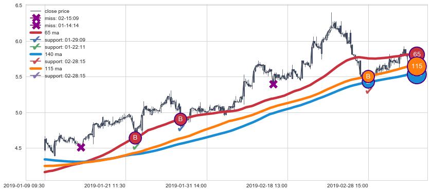 ➢ 最优均线组合共正确确认支撑阻力信号14处,正确确认率 66.67%