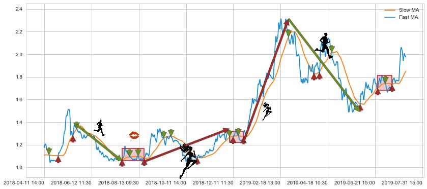 05-24 10:30至07-23 11:30 慢线与快线呈空头排列, 慢线与快线接触少,无缠绕