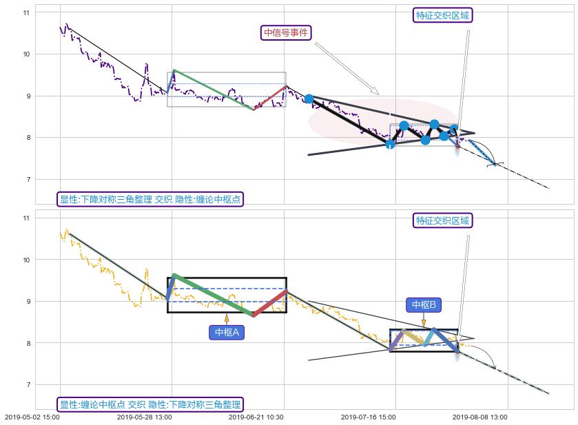 ➢ 下降对称三角整理属【中级别信号事件】缠论中枢点属【长级别信号事件】中长周期组合信号事件,中长事件长度比37.43%