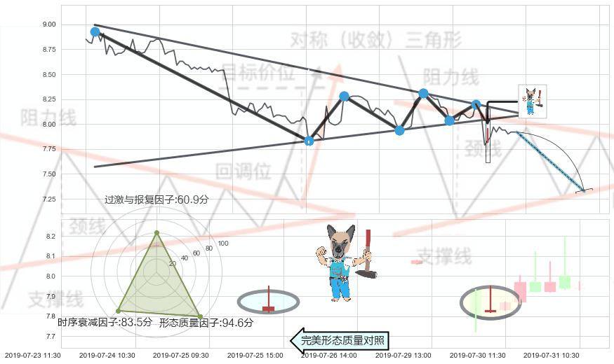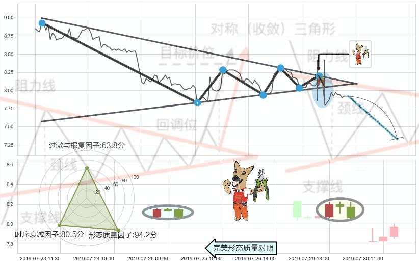 ➢ 【卖1】: 激进型 卖点→(07-30:09: 8.04 )形成突破下降【对称】三角形整理【整理】形态