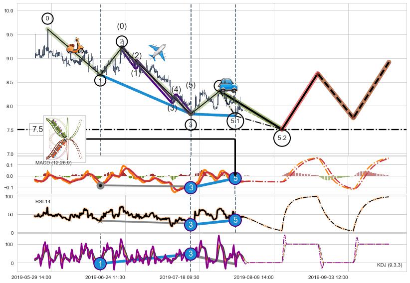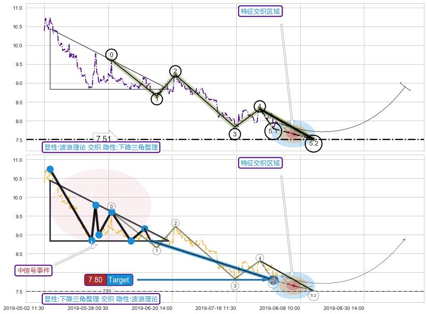 ➢ 5.1: 预测当前第5浪位置(07-30:09, 7.79),仍然有下跌空间