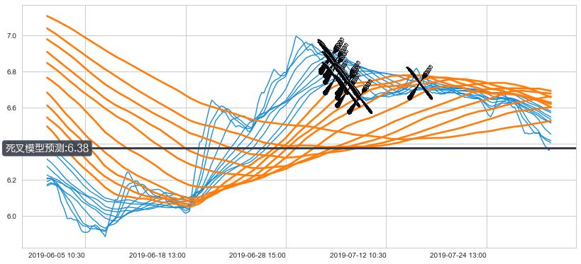 ➣ 55小时均线于(07-05 15:00: 6.76)形成【死叉】基于【死叉历史模型】预测死叉后最低波谷价格: 6.38, 死叉后最低价格6.32,已经下跌超出预测最低波谷价格, 预期反弹