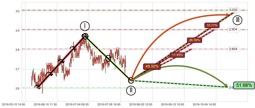 ➣ 循环浪继续向上【平均值】位置(10-03:15, 2.904),匹配聚类样本比例54.15%, 可能性概率26.16%
