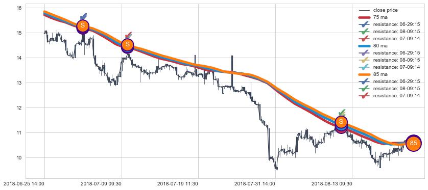 ➢ 最优均线组合共正确确认支撑阻力信号3处,正确确认率 42.86%
