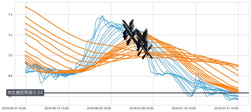➣ 45小时均线于(07-02 10:30: 7.27)形成【死叉】基于【死叉历史模型】预测死叉后最低波谷价格: 6.92, 死叉后最低价格6.55,已经下跌超出预测最低波谷价格, 预期反弹
