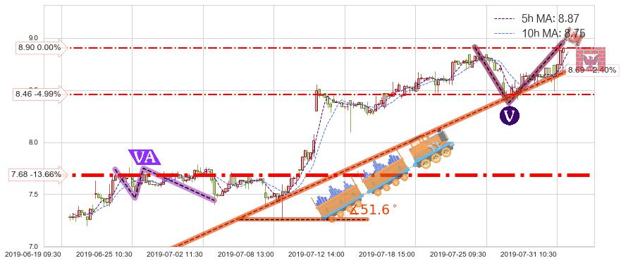 ♘ 支撑价格位8.46,可信任强度45.31%,距离最后交易2019-07-31 15:00形成的收盘价格8.90相差 -4.99%