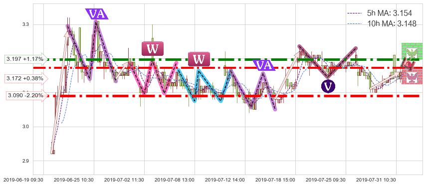 ♘ 阻力价格位3.197,可信任强度93.60%,距离最后交易2019-07-31 15:00形成的收盘价格3.160相差 +1.17%