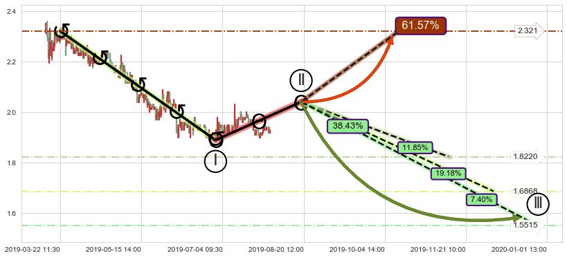 ➢ 循环浪继续向下【最低】位置(01-01:13, 1.5515),匹配聚类样本比例19.25%, 可能性概率7.40%