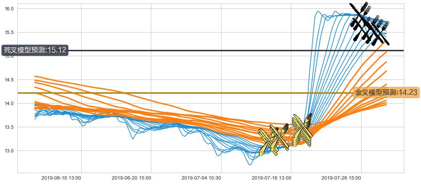 ➣ 120小时均线于(07-15 09:30: 13.29)形成【金叉】基于【金叉历史模型】预测金叉后最高波峰价格: 13.96, 金叉后最高价格15.98,已经上涨超出预测最高波峰价格, 预期回调