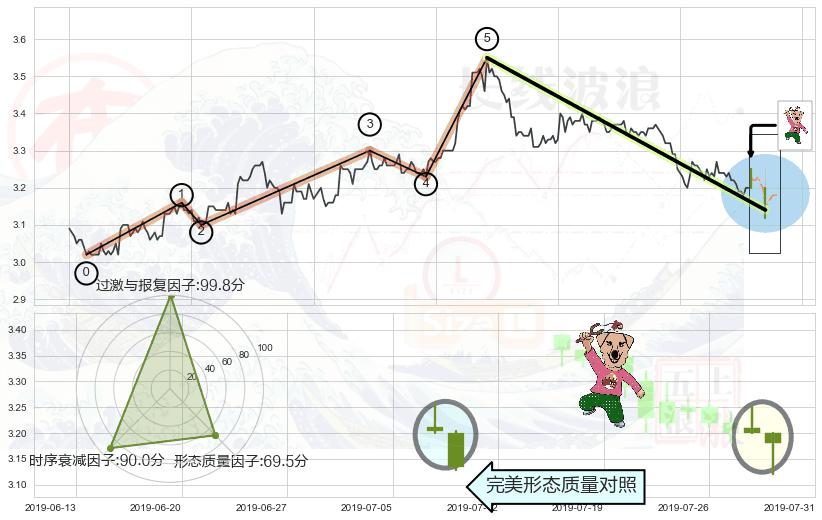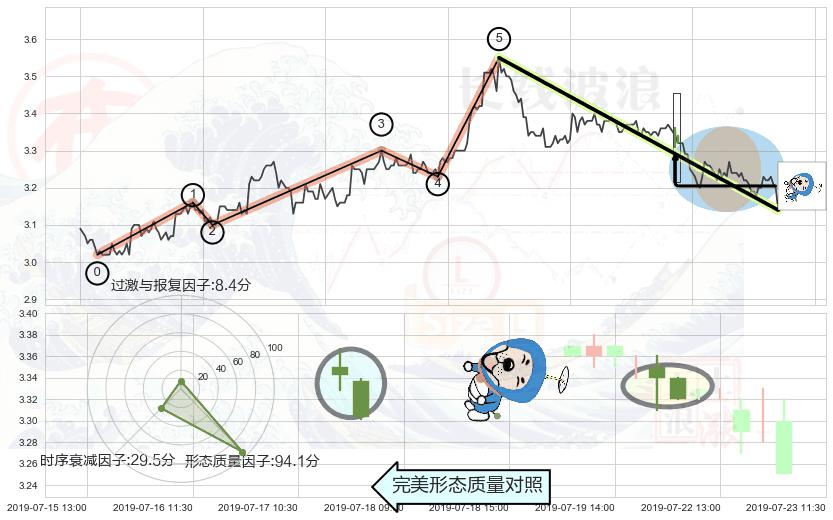 ➢ 🕰 价格走势在2019-07-23 00:00:00至2019-07-29 00:00:00期间形成高档五阴线,残存影响值:-5.09