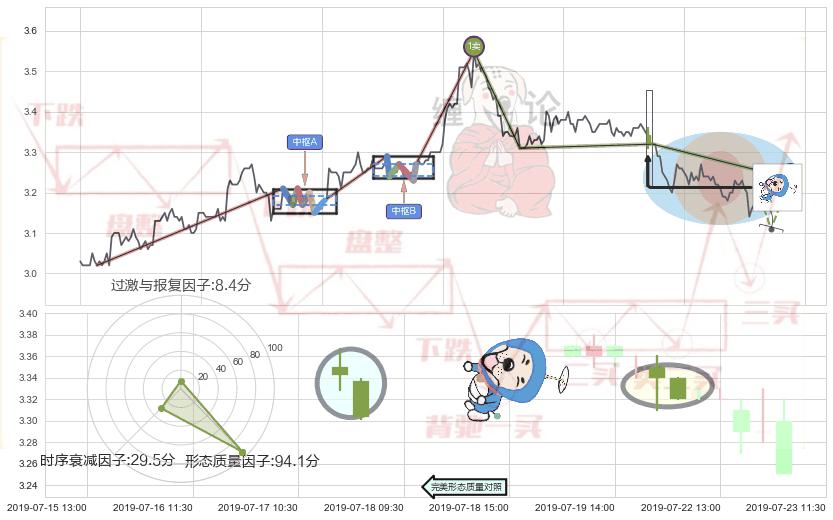 ➢ 🕰 价格走势在2019-07-22 09:30:00至2019-07-22 10:30:00期间形成下跌螺旋桨,残存影响值:-2.43