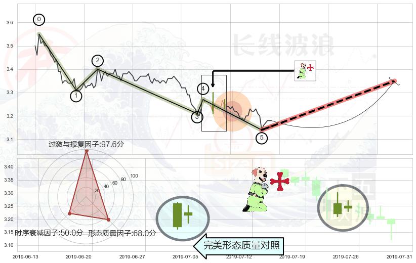 ➢ 🕰 价格走势在2019-07-30 00:00:00至2019-07-30 00:00:00期间形成看涨(低位)倒锤头线,残存影响值:7.08