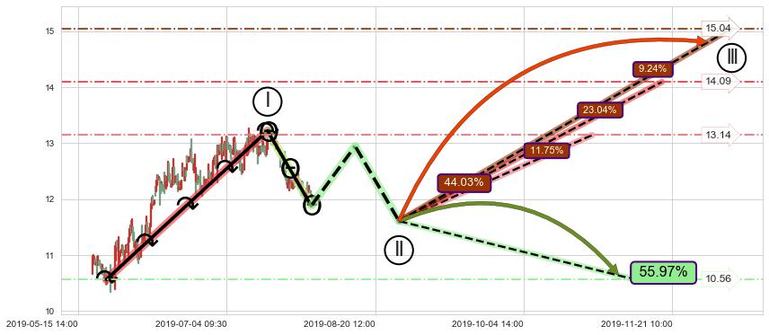 ➢ 循环浪继续向上【最低】位置(10-28:10, 13.14),匹配聚类样本比例26.68%, 可能性概率11.75%
