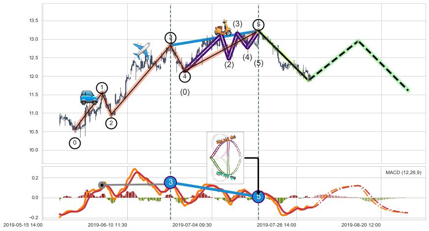 ➣ 顶部尽头线(下山虎) + 波浪理论上涨浪:浪5回调拐点信号叠加后【信号初始稳固度】高,【看空】信号叠加【可信度影响大】