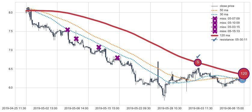 ➣ 70小时均线于(07-05 09:30: 6.30)形成【死叉】基于【死叉历史模型】预测死叉后最低波谷价格: 5.87, 死叉后最低价格5.56,已经下跌超出预测最低波谷价格, 预期反弹