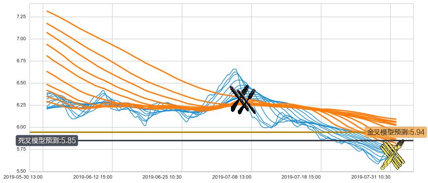 ➢ 60小时均线于(07-05 09:30: 6.32)形成【死叉】基于【死叉历史模型】预测死叉后最低波谷价格: 5.84, 死叉后最低价格5.56,已经下跌超出预测最低波谷价格, 预期反弹