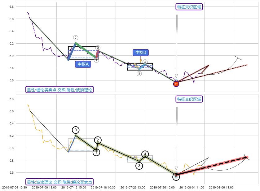 ➣ 缠论买卖点:下降缠中枢AB形成后猜想拐点1买已到达,猜想后续持续拉升(均值回复)
