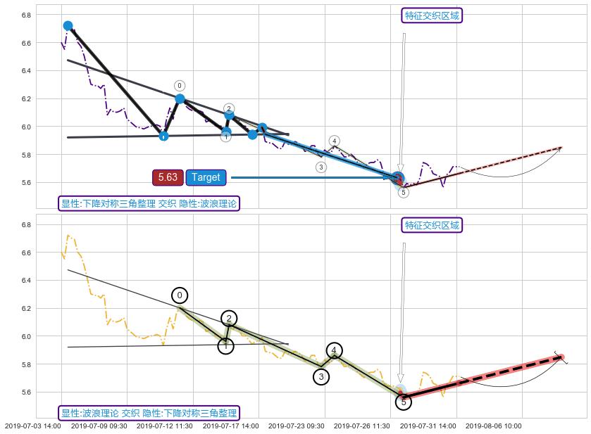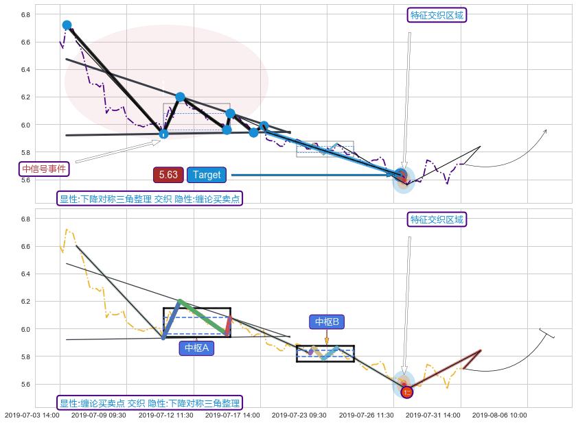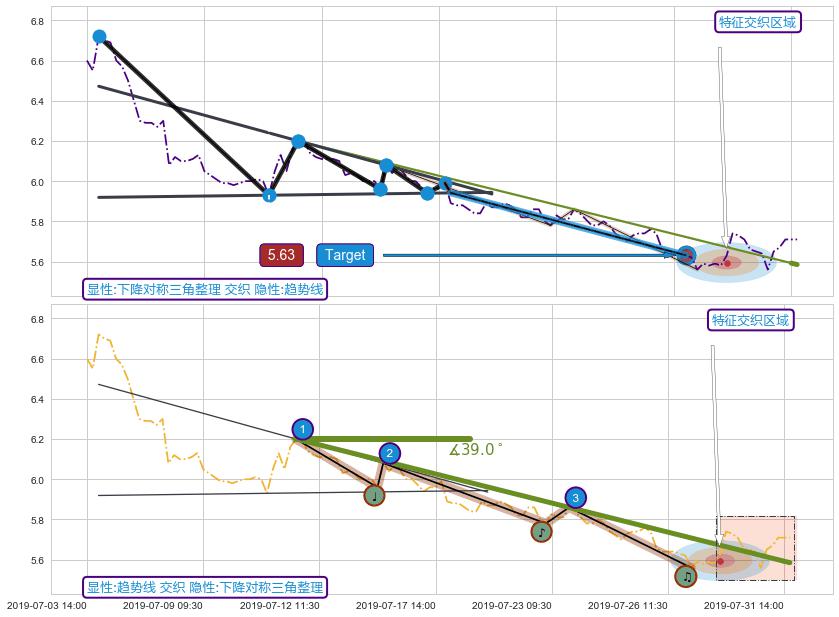 ➢ 2019-07-11 14:00-2019-07-31 14:00下跌趋势存在反转上涨[机会],其原下跌趋势的阻力位(5.59)已被突破[强支撑信号],原下跌趋势角度: 39.0˚