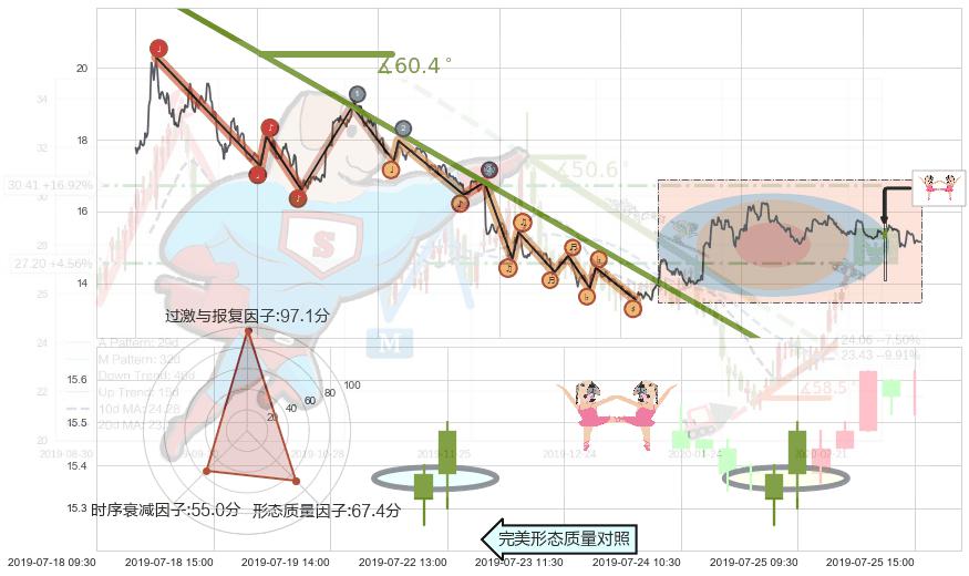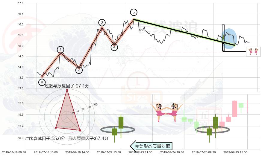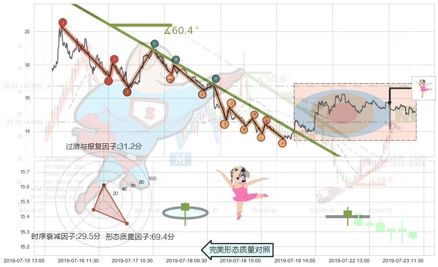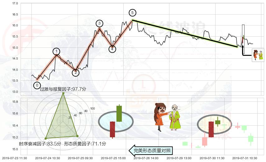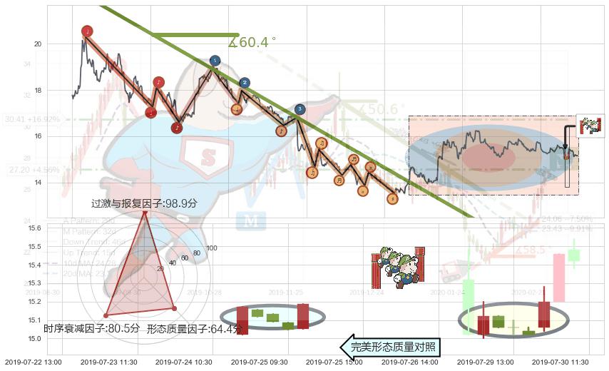 从2019-07-23 11:30至2019-07-31 15:00,共包含40个小时,阶段股价下跌-0.43%,阶段股价变动位移路程比: 1 : 38