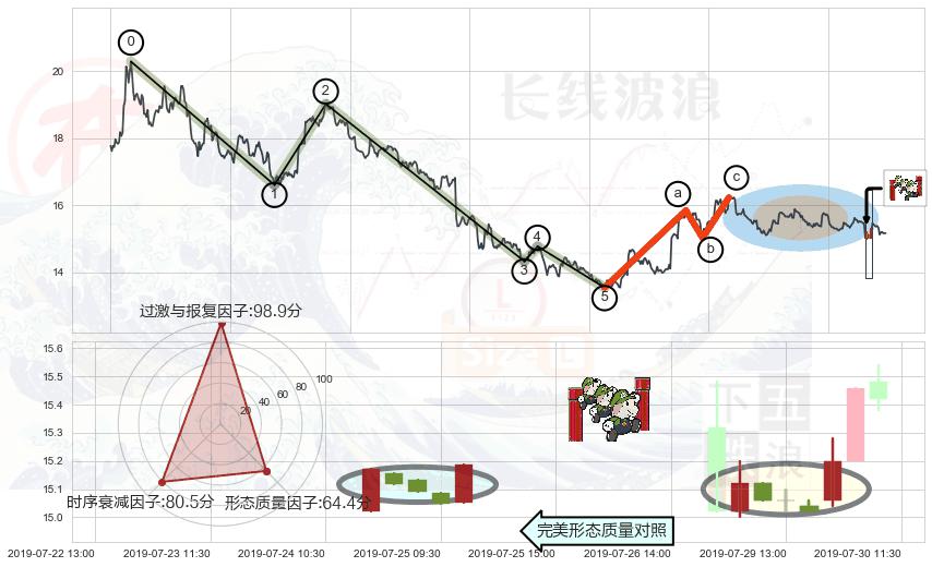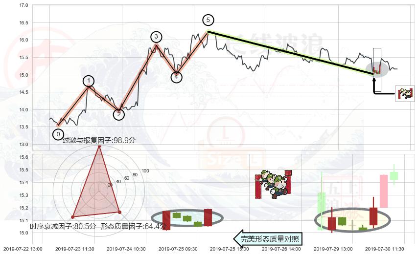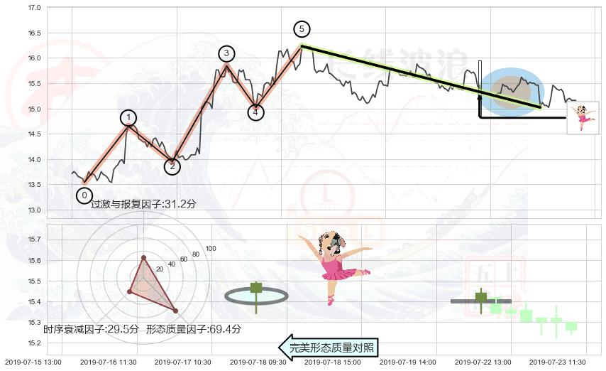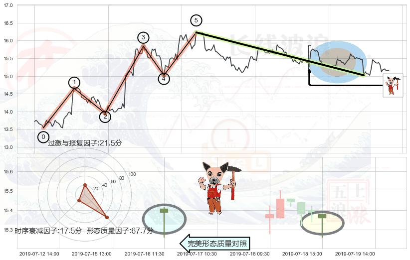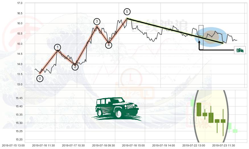 ➢ 🕰 价格走势在2019-07-22 11:30:00至2019-07-23 09:30:00期间形成高档五阴线,残存影响值:-2.12