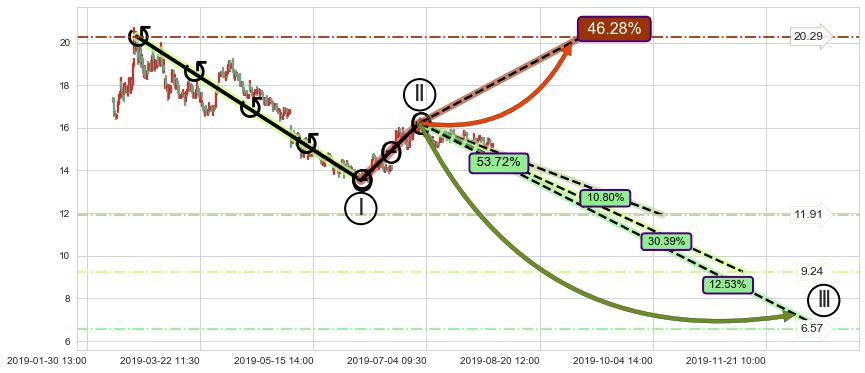 ➢ 循环浪继续向下【最低】位置(12-13:15, 6.57),匹配聚类样本比例23.33%, 可能性概率12.53%