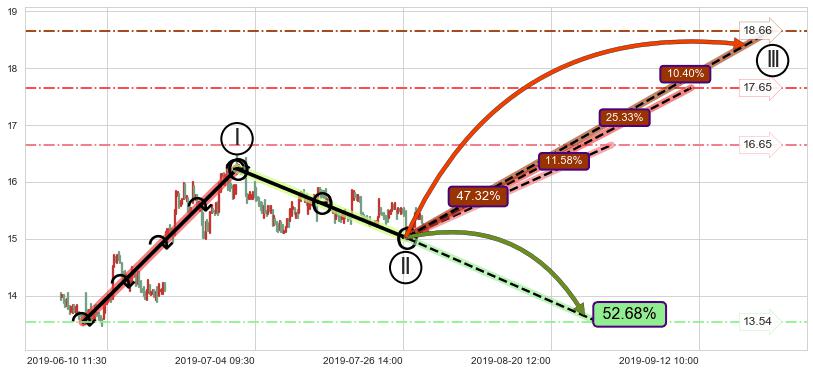 ♘ 阻力价格位18.79,可信任强度56.53%,距离最后交易2019-07-31 15:00形成的收盘价格15.16相差 +23.96%
