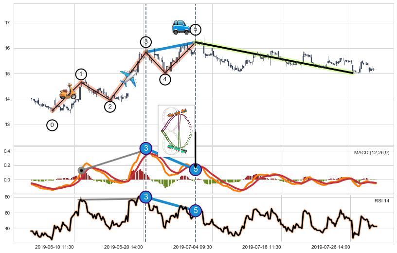 ➢ 最后的下跌趋势2019-02-25 14:00至2019-06-11 11:30:存在突破迹象,后续小反弹或者反转上涨