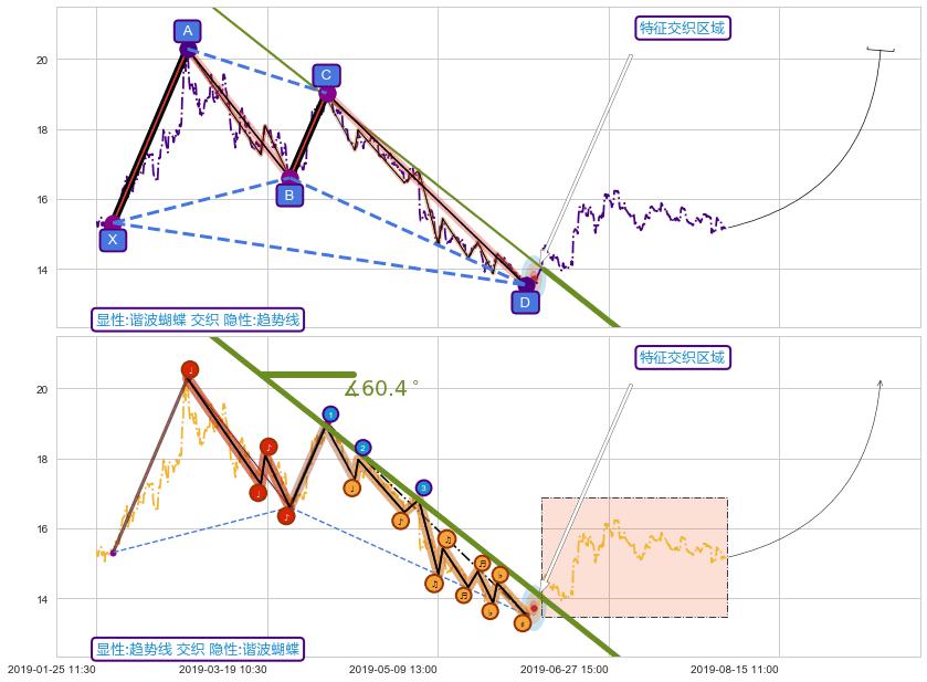 ➢ 谐波蝴蝶与趋势线信号事件周期长度级别相同,同周期信号事件