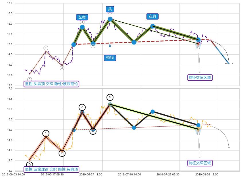 ➢ 头肩顶与波浪理论信号事件周期长度级别相同,同周期信号事件