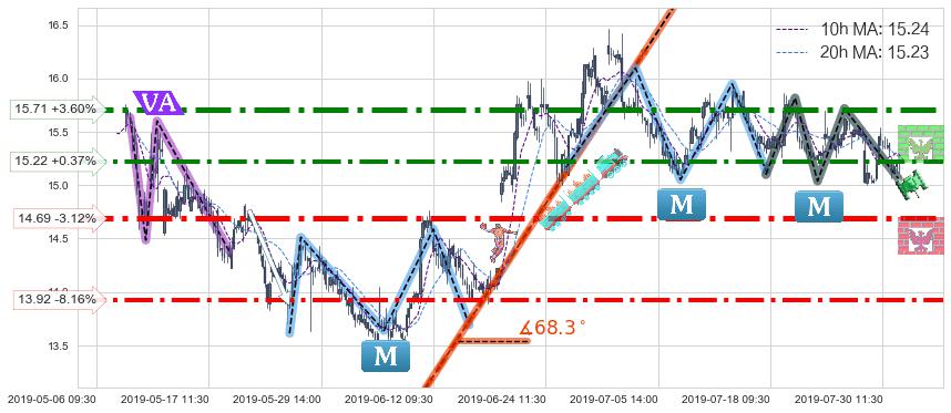♘ 阻力价格位15.71,可信任强度92.10%,距离最后交易2019-07-31 15:00形成的收盘价格15.16相差 +3.60%