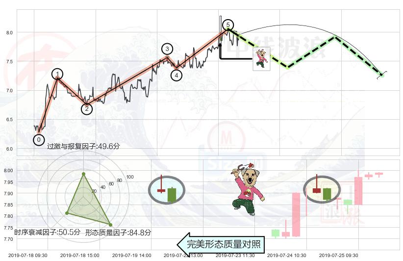 ➢ 🕰 价格走势在2019-07-24 00:00:00至2019-07-25 00:00:00期间形成顶部尽头线(下山虎),残存影响值:-4.56