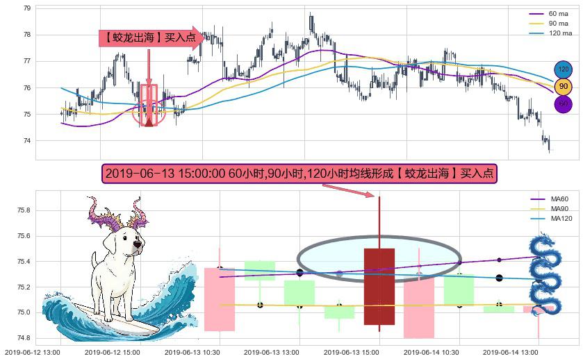 ⚀ 2019-06-13 15:00:00小时显现 60小时-90小时-120小时均线 【蛟龙出海】买入点 看多信号,后市看涨,买入