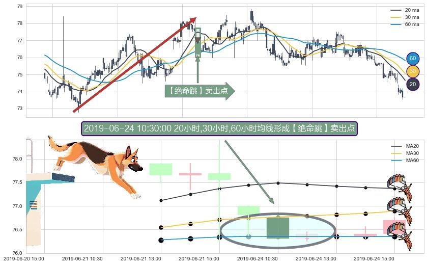 ⚀ 2019-06-24 10:30:00小时显现 20小时-30小时-60小时均线 【绝命跳】卖出点 看空信号,后市看跌,卖出