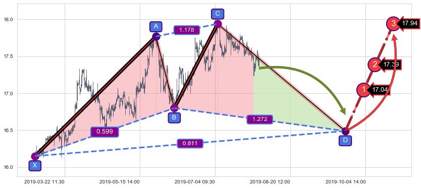 ➣ D点拟合预测价格16.49,距离最后交易收盘价格17.34相差 -4.90%
