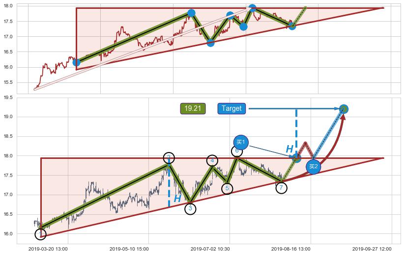 🍖 长线趋势跟踪组合短线均值回复[强支撑信号]2019-01-31 13:00-2019-07-09 13:00上升趋势依然成立(上涨趋势跟踪依然可行),短线价格略微下行回调(均值回复猜想),即将接近趋势提供的未破位的支撑价格:17.52。