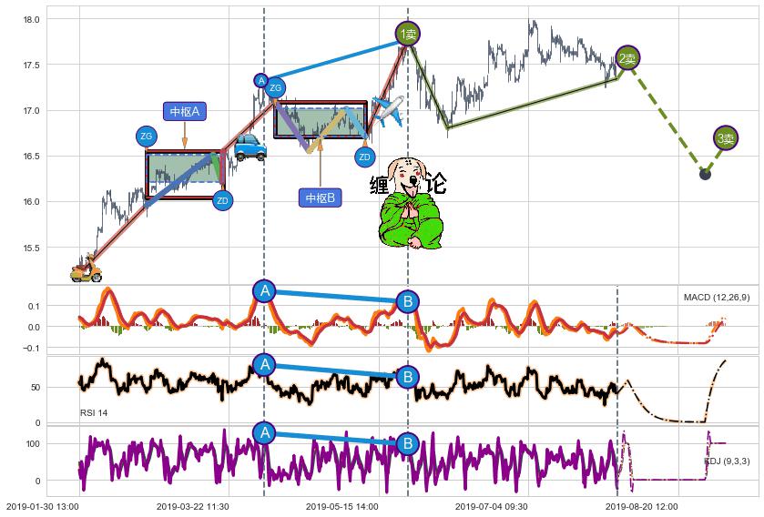从2019-06-28 10:30至2019-07-31 15:00,共包含137个小时,阶段股价上涨0.19%,阶段股价变动位移路程比: 1 : 147