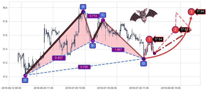 ➣ 已完成【蝙蝠】形态起点X: 06-13:09, 终点D: 07-29:09, 共187交易小时