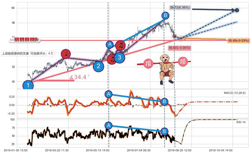 ➢ 预测:2019-08-08 10:00,【小幅回撤】稳定目前上涨趋势的前提下,预测价格:55.85