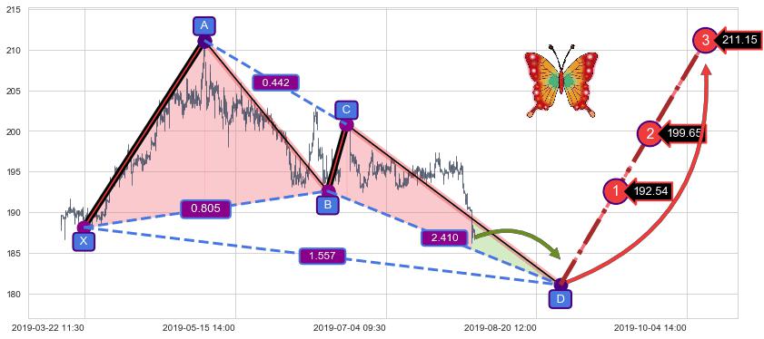 ➣ 未完成【蝴蝶】形态起点X: 03-22:10, 已到达C点: 06-20:11, 预测最终D点: 08-27:14, 共629交易小时