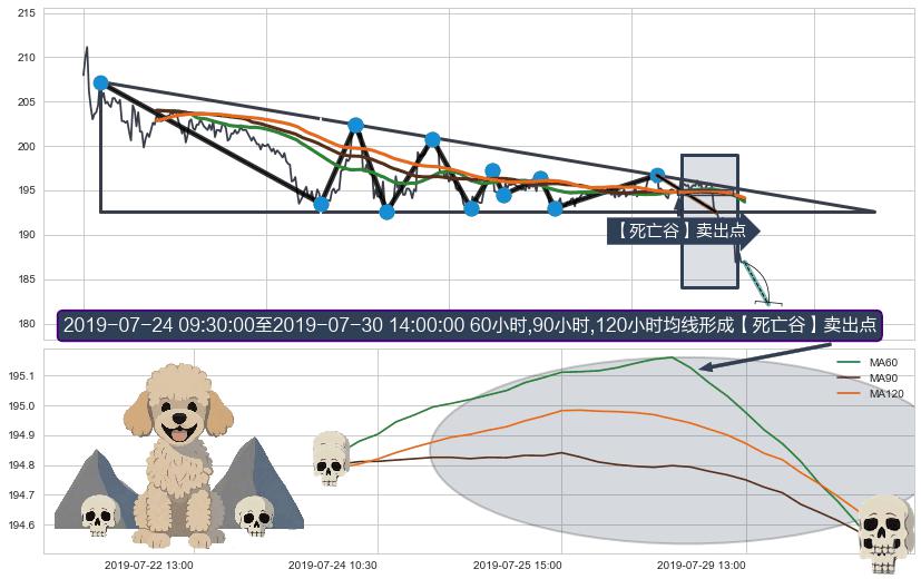 从2019-05-07 09:30至2019-07-31 15:00,共包含354个小时,阶段股价下跌-9.96%,阶段股价变动位移路程比: 1 : 10,下跌趋势角度: 28.7