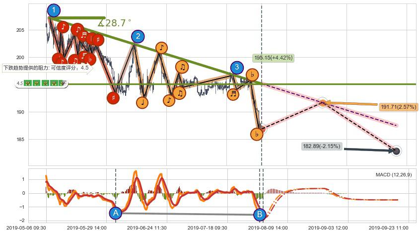 ➣ 预测:2019-09-23 11:00,【继续下探】稳定目前下跌趋势的前提下,预测价格:182.89