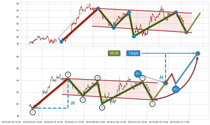 ➣ 【支撑】连续作用在→【③⑤⑦】形成下支撑震荡平行线