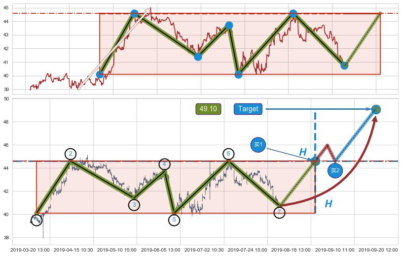 ➢ 【阻力】连续作用在→【②④⑥】形成上阻力震荡平行线