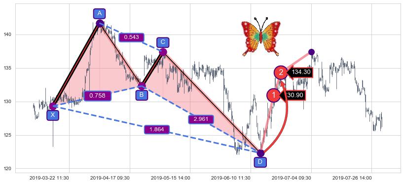 ➣ 已完成【蝴蝶】形态起点X: 03-15:15, 终点D: 06-13:09, 共344交易小时