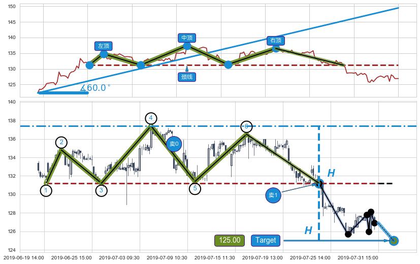 ➢ 【卖1】: 激进型 卖点→(07-24:14: 131.20 )形成突破三重顶【反转】形态