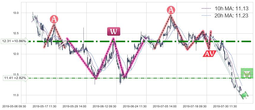 ♘ 阻力价格位12.31,可信任强度95.15%,距离最后交易2019-07-31 15:00形成的收盘价格11.10相差 +10.86%