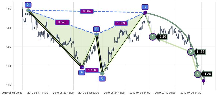 ➣ BC回撤位置在AB的118.6%,符合形态要求