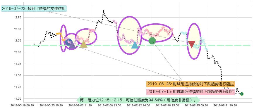 ♘ 阻力价格位12.15,可信任强度94.54%,距离最后交易2019-07-31 15:00形成的收盘价格11.10相差 +9.46%