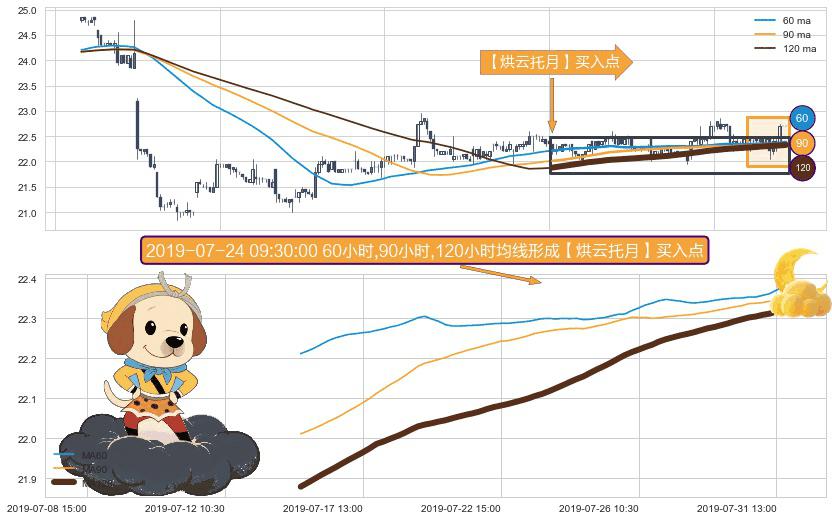 形态多维评估: ⚀ 2019-07-16 09:30:00小时-2019-07-31 15:00:00小时显现 60小时-90小时-120小时均线 【烘云托月】买入点 看多信号,后市看涨,买入